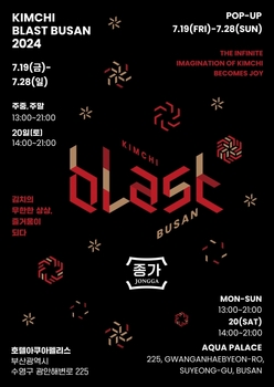 김치 브랜드 대상 종가가 오는 19일부터 28일까지 호텔아쿠아펠리스 부산에서 ‘김치 블라스트 부산 2024’를 운영한다고 15일 밝혔다. ‘김치 블라스트 부산 2024’는 ‘김치의 무한한 상상, 즐거움이 되다’를 테마로 새로운 김치를 경험하고자 하는 모든 세대