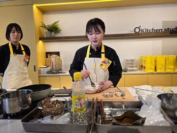 "오늘 선보일 레시피는 정통 한식과 오뚜기 창립 제품 '카레'를 접목한 디저트 2종입니다. 스튜디오에서 직접 오뚜기 제품을 활용해 조리하며 익숙하면서도 새로운 맛을 즐겨보시기 바랍니다." 25일 오전 10시, 강남구 논현동 오뚜기 오키친스튜디오 미디어 행사에서