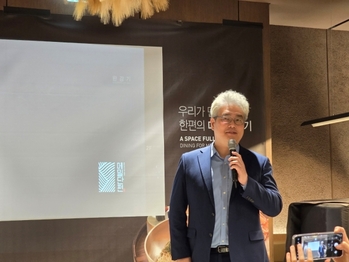 "그간 외식기업으로만 알려졌던 교촌이 최근 글로벌 종합 식품외식기업으로 성장에 나섰습니다. 한식 브랜드에 많이 집중하고 있고, 지극히 한국적이면서도 강렬한 메시지를 전달할 수 있는 방법을 찾다 이번 메밀단편을 오픈하게 됐습니다." 21일 서울 영등포구 여의도동 메밀단편
