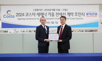 롯데관광개발이 세계 1위 글로벌 크루즈 선사인 코스타 크루즈와 9월 크루즈 전세선 운항 계약을 체결했다고 7일 밝혔다. 체결식은 롯데관광 서울지점에서 진행됐다. 지난해 10월 올해 크루즈 전세선 연간 운항 계약을 공식 체결한 이후 출시했던 5월 크루즈 특별 전