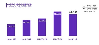 엔데믹에 해외여행객이 급증하며 2월 여행사들의 해외여행 송출객 수가 모두 전년대비 크게 뛰었다. 6일 관련 업계에 따르면 하나투어의 2월 해외패키지 송출객수는 19만6484명으로 전년 동월 대비 86% 증가했다. 코로나 이전인 2019년 동월 대비 약 61% 수준을 회