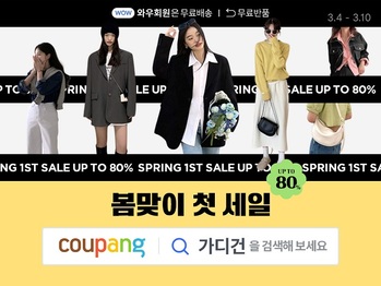 쿠팡이 봄 패션 아이템을 최대 80% 할인 특가에 선보이는 ‘봄맞이 첫 세일’을 진행한다고 4일 밝혔다3월 10일까지 진행되는 이번 행사에서는 봄에 제격인 가디건, 티셔츠, 바람막이, 원피스, 스니커즈 등 다양한 카테고리의 봄 패션 아이템 300여개를 파격 혜택가에 선
