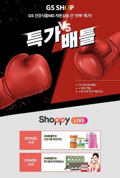 GS샵 건강기능식품 MD들이 고물가 부담 해소를 위한 최저가 경쟁에 나선다고 22일 밝혔다.2월 23일부터 25일까지 진행되는 ‘MD 특가 배틀’ 행사는 가격 할인에 더해 카드 할인 7% 즉시 할인에 더해 구매금액에 따라 최대 5만원까지 적립해준다.전체 구매 고객이 5
