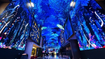 현대퓨처넷은 인천 영종도 모히건 인스파이어 엔터테인먼트 리조트 내 오픈한 디지털 엔터테인먼트 거리 '오로라’가 방문객들에게 큰 호응을 얻고 있다고 24일 밝혔다.'오로라'는 인스파이어 리조트 내 구축된 150m길이의 디지털 엔터테인먼트 거리다. 곡선 형태의 높이 25m
