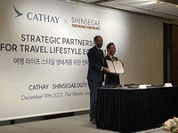 신세계면세점은 19일 서울 웨스틴조선호텔에서 세계 10대 항공사중 하나인 캐세이(Cathay)와 업무 협약식을 체결했다고 밝혔다. 협약식에는 신세계디에프 유신열 대표이사, 캐세이의 폴 스미튼 (Paul Smitton) 아시아 마일즈 CEO 등 양사의 주요 관계