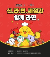 신라면세점이 농심과 손잡고 MZ세대를 타깃으로 한 이색 콜라보에 나섰다.신라면세점은 인천공항점 오픈 기념으로 신라면세점의 대표 캐릭터인 ‘신라프렌즈’를 활용해 ‘농심 신라면’과 콜라보를 진행한다고 12일 밝혔다.오는 23일까지 신라프렌즈 및 농심 인스타그램을 팔로우하고