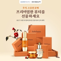 롯데온 온앤더뷰티가 오는 28일까지 아모레퍼시픽 그룹과 함께 ‘프리미엄 추석 선물 기획전’을 진행한다고 23일 밝혔다. 추석 선물을 주제로 아모레퍼시픽 그룹의 설화수, 헤라, 프리메라 등 인기 브랜드의 단독 기획 상품을 선보이고, 할인 쿠폰 증정 및 카드 즉시