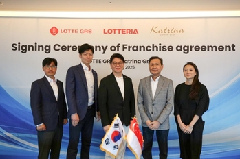 롯데GRS가 싱가포르 F&B 그룹 카트리나와 마스터 프랜차이즈 계약을 체결하며 싱가포르 시장 공략에 나선다고 26일 밝혔다. 지난 25일 롯데월드타워에서 진행된 체결식에는 롯데GRS 차우철 대표이사를 비롯해 카트리나 그룹 알란 고 대표이사 등 주요 경영