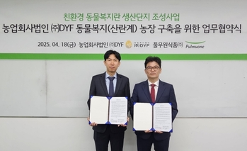 풀무원식품은 지난 18일 농업회사법인 주식회사디와이에프(이하 DYF)와 산란계 동물복지 농장 구축 및 동물복지 계란 공급 사업을 위한 업무협약(MOU)을 체결하고, 동물복지란 공급처를 추가로 확보했다고 20일 밝혔다.양사는 산란계의 고통 등 동물복지의 필요성에 뜻을 같