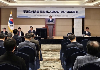 “매출 5조 달성 비전은 여전히 유효하다.”25일 서울 송파구 롯데호텔 월드에서 열린 제58기 정기주주총회에서 만난 박윤기 롯데칠성음료 대표는 ‘대내외 경영 여건이 어려운데 매출 비전 조정 계획이 있느냐’는 기자의 질문에 “공시한 대로 2028년까지(달성하겠다)”면서
