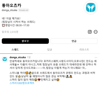 동아오츠카, 고객 소통 접점 강화 … '스레드' 계정 개설