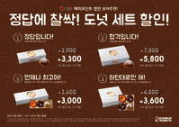 던킨도너츠가 다가오는 수능시험을 앞두고 오는 12~17일 찹쌀 도넛 세트를 비롯한 수능 도넛 세트 4종을 선보인다고 11일 밝혔다. 이번에 선보인 '정답입니다!' 세트(3900원)는 쫄깃한 찹쌀 단팥 도넛 3개로 구성됐다. '합격입니다!' 세트는 찹
