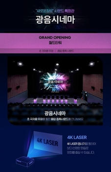 롯데시네마가 월드타워에 ‘광음시네마’ 10번째 상영관을 새롭게 오픈한다고 23일 밝혔다.롯데시네마 대표 음향 특화관 ‘광음시네마’는 론칭 1년여 만에 10개관 오픈이라는 이례적인 성장세를 기록하며 기존에 경험할 수 없었던 ‘사운드버스터’급 감각을 전달하고 있다.&nbs