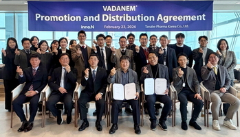 HK이노엔이 최근 타나베파마코리아와 신성 빈혈 치료 신약 '바다넴정'의 국내 공동 프로모션 계약식을 진행했다.11일 HK이노엔에 따르면 이번 계약으로 양사는 바다넴정의 국내 공동 영업 및 마케팅을 진행한다. 100병상 초과 의료기관은 양사가 함께 담당하며 100병상 이