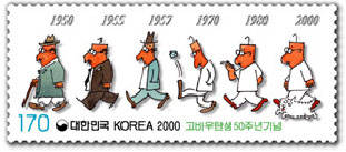 '고바우' 김성환 화백의 고향은 개성이다. 38선이 그어지기 훨씬 전에 서울에 온 개성 부자집 아들은 경복고등학교를 다닐때부터 만화를 그렸다. 6.25남침 전쟁이 일어나기 전부터 당시 일간신문인 연합신문에 '멍텅구리'라는 시사만화를 연재했고, 1955년부터 동아일보 조선일보 문화일보에 유명한 <고바우 영감>4컷짜리 시사만화를 매일 연재하다가 2000년 9월에 붓을 놓았다. 그해 11월1일엔 정부에서 '고바우 영감 50주년 기념우표(아래 사진)를 발행했다.