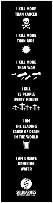 마실 물이 없으면 사람은 죽을 수밖에 없다. 물은 인간의 권리는 넘어 생명의 권리인 것이다. 국제적인 인권문제를 다루는 솔리다리테 앵테르나쇼날(Solidarité Internationale)이 세계 물의 날을 맞아 이런 설치물을 놓은 것은 바로 그런 이유.