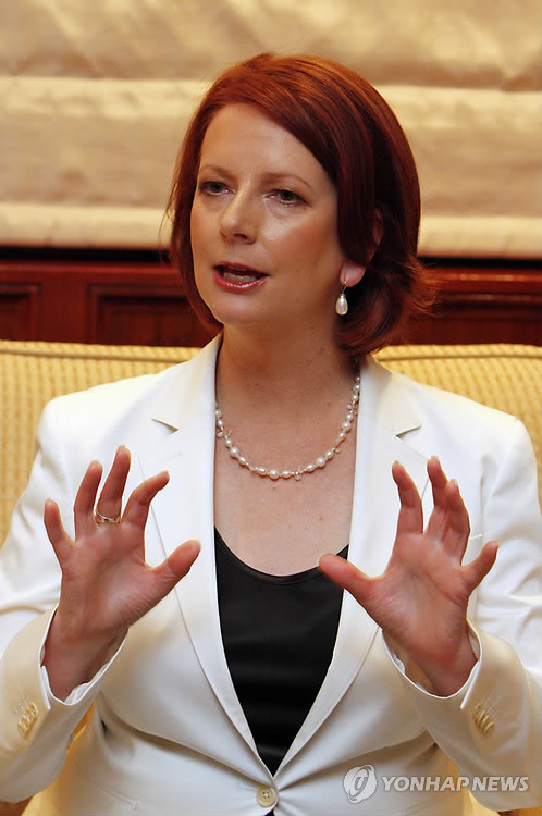 길러드 총리는 4일 시드니 시내 총리 집무실에서 연합뉴스와 단독인터뷰를 갖고 "G20 정상회의에서는 이와함께 글로벌 경제성장 촉진 및 일자리 창출도 집중 논의돼야 한다"고 강조했다.