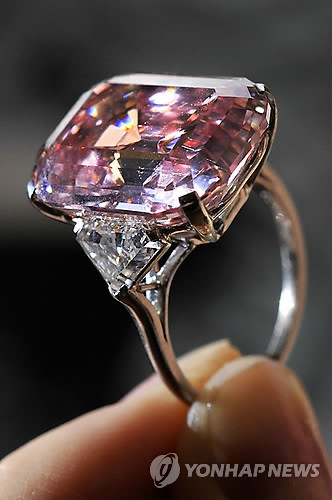 핑크 다이아몬드 520억원에 낙찰(AFP=연합뉴스)소더비는 핑크 다이아몬드가 육안으로는 식별되지 않는 미세한 흠이 있지만 재가공을 통해 완전무결한 보석이 될 수 있을 것이라고 밝혔다.