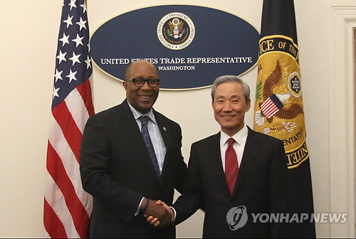 김종훈 통상교섭본부장과 론 커크 미국 무역대표부(USTR) 대표는 이날 오전 8시(현지시간)부터 20여분간 통상장관 회의를 갖고 최종담판을 벌여 합의에 이르렀다.