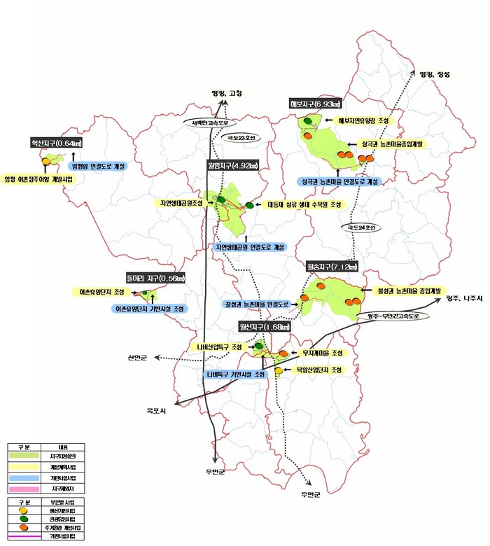 지난 2일 준공된 영산강사업 선도사업지구 함평2지구를 비롯 함평군 일대 함평군 일대 21.88㎢(군 전체면적의 5.6%)가 8일부터 개발촉진지구로 지정된다.