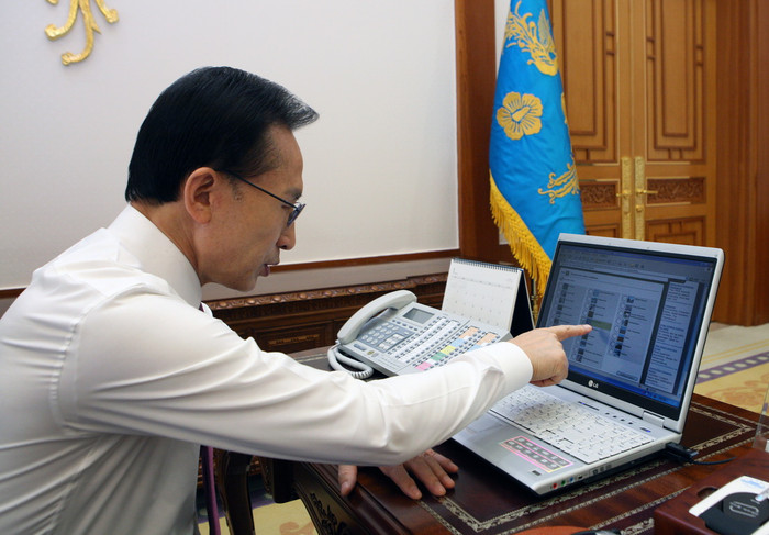 이 대통령은 이날 오후 청와대 집무실 컴퓨터를 이용해 뉴세븐원더스 홈페이지에 접속, 투표를 마쳤다고 김희정 청와대 대변인이 전했다.