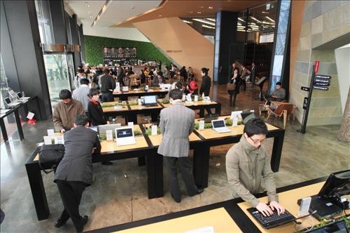 KT가 광화문 사옥 1층 KT아트홀을 고쳐 만든 올레스퀘어는 약 3천300㎡(1천평) 규모의 내외부 전체 공간에서 와이파이를 자유롭게 이용하면서 첨단 IT기기와 문화 콘텐츠를 경험할 수 있는 복합 문화공간이다.