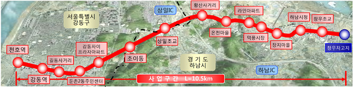 서울~천호 노선은 서울구간이 5.1km 하남구간이 5.4km등 총 연장 10.5㎞이고, 버스정류소는 13개소이다. 이 구간에 서울 하남 광주 남양주를 오가는 총 12개 노선 293대의 버스가 이 BRT 구간을 운행할 예정이다. BRT 노선엔 버스운행관리시스템(BMS), 버스정보안내시스템(BIS), 버스 우선신호시스템 등과 같은 첨단 교통서비스가 갖춰져 있다.