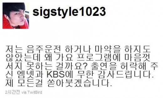 서인국은 31일 자신의 트위터에 "저는 음주운전 하거나 마약을 하지도 않았는데 왜 가요 프로그램에 마음껏 서지 못하는 걸까요?"라며 지상파 음악프로그램 출연에 대한 속삭한 마음을 표현했다.