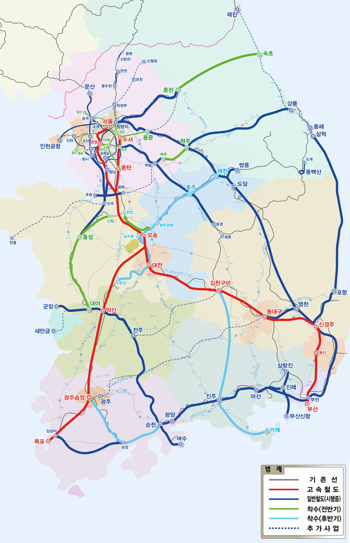 또 두번째로는 일반철도 개선이다. 일반철도도 230km/h급으로 고속화하고, 경부․호남 고속철도와 연계하여 KTX 서비스지역을 전국으로 확대해 나아갈 계획이다.