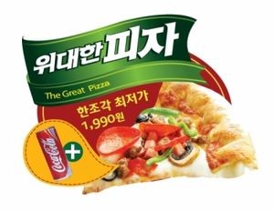 13일 GS25를 통해 출시된 위대한 피자는 이마트 피자와 같이 지름 45㎝짜리이지만 한 판을 6등분해 한 조각씩 판매된다. 가격은 조각으로 비교했을 때 이마트피자(2천500원)보다 510원 싼 1천990원이다.