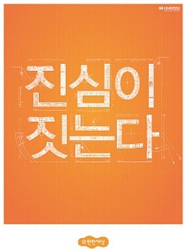 사진 속에 등장하는 주인공은 주차장에 덩그러니 놓여 있는 차 한대가 전부다. 단순하기 이를데 없는 이 사진엔 '주차 공간이 10cm 늘어났다'는 카피만 눈에 띈다. 톱스타도 없고 흔하디 흔한 CG처리도 하지 않았다. 어찌보면 성의 없어 보이기까지한 이 광고는 대림산업의 아파트 브랜드 'e편한세상'의 이미지 광고. '진심이 짓는다'란 캐치프레이즈를 내건 대림산업의 광고 캠페인은 광고가 방영되는 기간 '브랜드 선호도'와 '인지도'를 두 배 이상 증가시켰다. 특정 연예인의 얼굴보다 아파트를 짓는 사람들의 '진정성'을 전면에 내세운 'e편한세상' 광고는 지난해 말 한 언론사가 광고대행사AE, 제작자 등을 대상으로 실시한 설문조사에서 톱스타들이 즐비한 타사 광고들을 제치고 '가장 선호하는 광고'로 선택됐고, 한국광고학회가 뽑은 '올해의 광고상'에서 영예의 대상을 수상하는 등 광고업계에 일대 파란을 일으켰다.