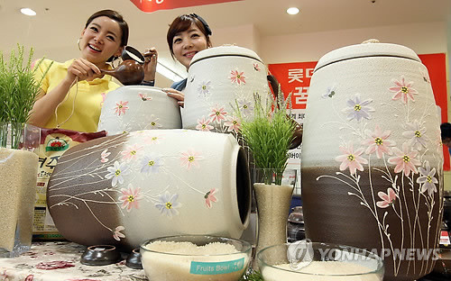 롯데마트 서울역점은 6일 쌀벌레 예방에 효과적인 천연황토로 만든 쌀독을 선보였다.