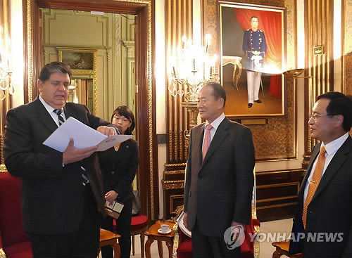 이상득 특사, 페루 방문서 가르시아 대통령 확약 받아印尼ㆍ터키 이어 3번째