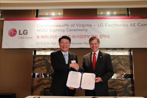 LG전자는 16일 남산동 그랜드 하얏트 호텔에서 미국 버지니아주 정부와 에너지 효율 극대화를 위한 양해각서(MOU)를 체결했다고 밝혔다.