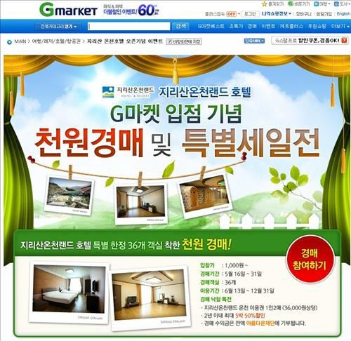 G마켓(www.gmarket.co.kr)은 오는 31일까지 지리산온천랜드호텔 입점 기념으로 '착한 천원 경매' 이벤트를 진행한다고 23일 밝혔다.