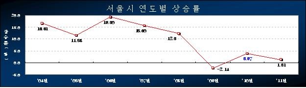 지난해 서울 지역 땅값이 2008년 전세계적인 금융위기 이후 2년째 회복세를 보인 것으로 집계됐다.