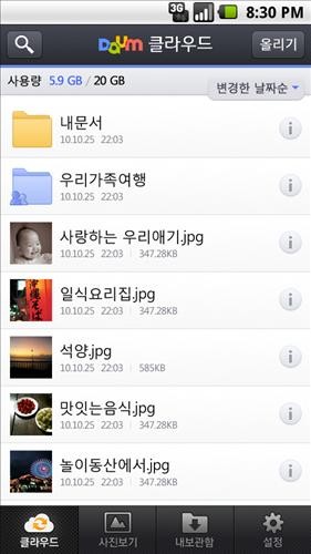 다음커뮤니케이션은 다음 클라우드(http://cloud.daum.net)의 저장공간을 50기가바이트(GB)로 확대하고 안드로이드용 애플리케이션을 출시한다고 1일 밝혔다.