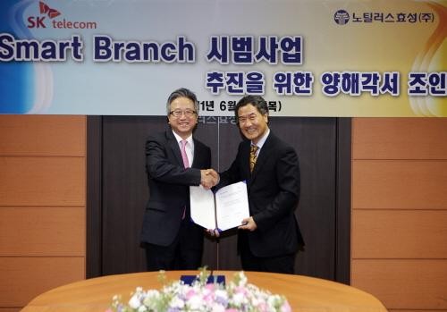• SK텔레콤(대표이사 사장 하성민, www.sktelecom.com)은 스마트 금융사업의 일환으로 추진 중인 '스마트 브랜치(Smart Branch)' 개발을 위해 국내 1위 금융 자동화기기(ATM ; Automatic Teller Machine) 업체 노틸러스효성(대표이사 손현식)과 MOU를 체결했다고 9일 밝혔다.