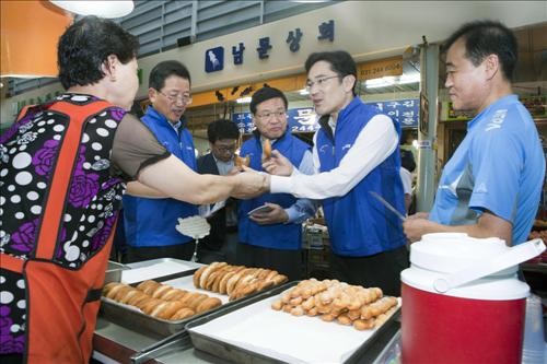 이 사장 등은 상인들에게 "요즘 경기가 어떤지", "주차 문제는 잘 해결하는지", "장사하는데 가장 큰 애로가 무엇인지" 등을 물었고, 이 사장은 얼굴을 알아본 상인들의 요청으로 즉석에서 기념촬영을 하거나 사인을 해주기도 했다.