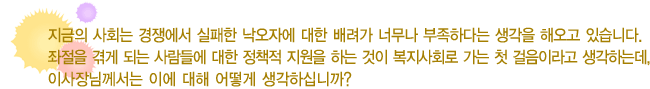 그래서 사회보장제도와 사회안전망이 필요합니다.