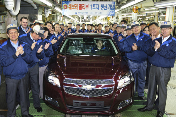 한국GM은 18일 부평 2공장에서 새 중형 세단 쉐보레 말리부(Chevrolet Malibu)의 1호차 양산을 축하하는 행사를 갖고, 본격적인 생산에 들어갔다. 쉐보레의 첫 글로벌 중형 세단인 말리부는 오는 11월 세계 최초로 한국에서부터 판매를 시작한다.