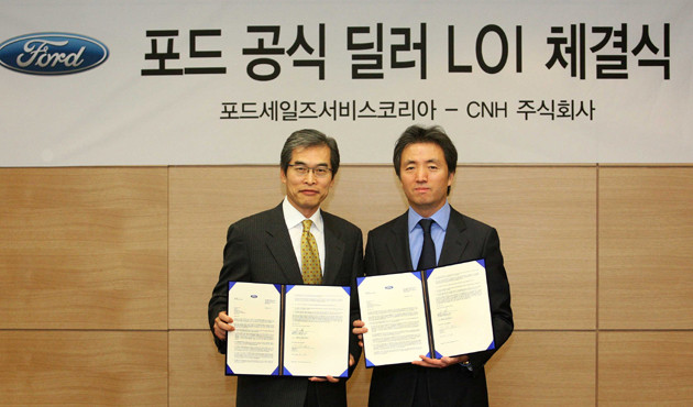 포드세일즈서비스코리아(대표이사 정재희, 이하 포드)는 6일 “코스닥 등록사인 CNH㈜(대표이사 임영기, 이하 CNH, 023460)와 포드·링컨 브랜드의 전국 판매 및 서비스 의향서(LOI, Letter of Intent)를 체결했다”고 밝혔다.