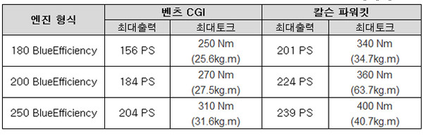 칼슨 측은 벤츠 차종 중 뉴 SLK, E클래스, C클래스 모델의 CGI 엔진 차종이면 모두 장착할 수 있다고 설명했다. 특히 2012년 1월 출시한 신형 벤츠 SLK 200 블루이피션시가 가장 적합하다고. 신형 벤츠 SLK200의 출시 때 엔진 출력은 184마력이지만 파워킷을 장착하면 224마력으로 크게 향상된다.