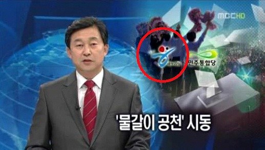 문제는 김세용 앵커가 관련 내용을 보도하는 동안 오른편 화면에 새누리당과 민주통합당의 로고가 등장했는데, 새누리당의 경우 새 로고가 아닌, 옛 한나라당의 '패러디 로고'가 등장해 논란을 일으킨 것.