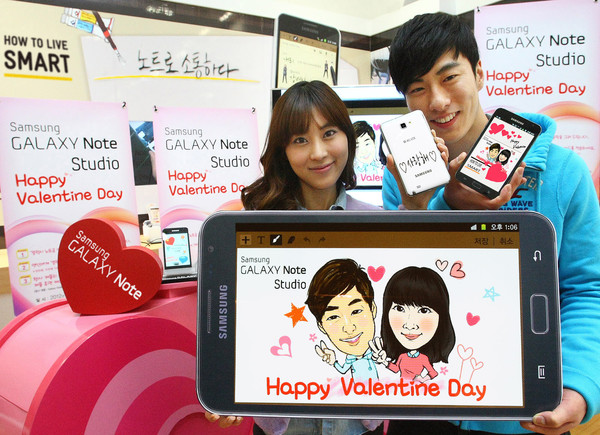 갤럭시노트로 커플 캐리커처를 그려주고, 후면 커버에 커플 메시지를 새겨주고, 커플들이 갤럭시노트에 직접 꾸민 손글씨 발렌타인데이 카드를 메일로 보내준다.