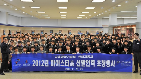 현대차와 교육과학기술부는 지난해 3월 맞춤형 기술인력 육성 및 기술 경쟁력 강화를 위해 마이스터고 산학협력 MOU를 체결한바 있다.