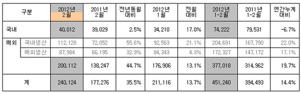 하지만 2월 근무일수가 지난해 17일에서 올해는 21일로 4일 늘어난 것을 감안하면 실질적인 국내 판매 증감률은 오히려 감소한 것으로 분석된다.