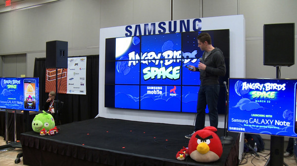 삼성전자는 갤럭시노트를 통해 앵그리버드 신작인 '앵그리버드 스페이스'의 체험 행사를 가졌다.