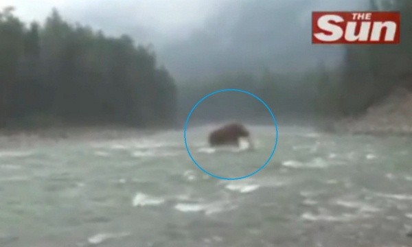 이 동영상은 유속이 빠른 강을 거대한 크기의 동물이 건너는 모습을 담고 있다.