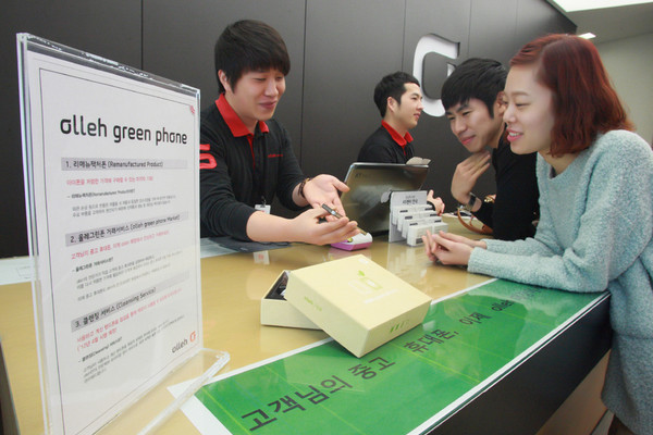 KT는 22일 올레매장에서 중고폰을 직접 보고 구입하며 바로 감정 받아 팔수도 있는 ‘올레 그린폰’ 서비스를 시작한다고 밝혔다.